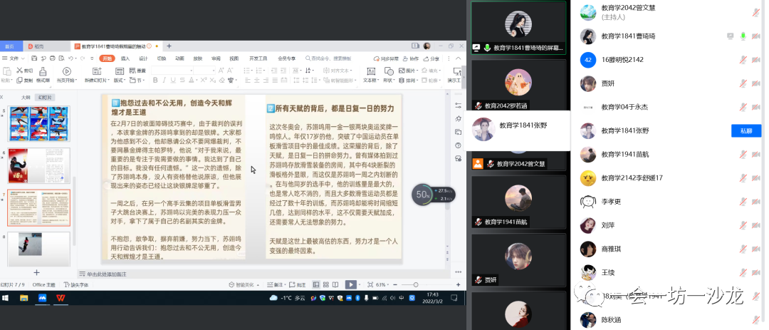 21级的同学主要分享了假期的兼职经历、观看冬奥会的感受。