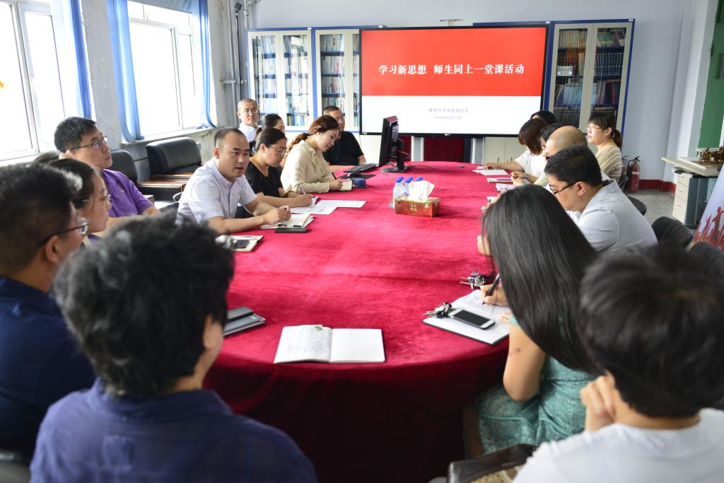 2018年6月7日,学校党委下发《关于开展“学习新思想师生同上一堂课活动的通知”》,yl6776永利集团党总支高度重视,积极组织。6月13日上午,yl6776永利集团党总支在第一实验楼四楼会议室开展了“学习新思想师生同上一堂课活动”。党总支全体党员以及民主党派同志和各部门教职工参加了学习活动。活动由yl6776永利集团党总支书记程宇主持。