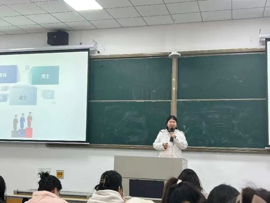教育学教研室袁琳老师为同学们带来了“未来不止一面:教育学专业毕业去向”的主题分享。她结合“专业介绍与培养目标”,通过丰富的案例和详实的数据,全面展示了教育学专业升学至硕士、博士的深造机会,以及教育学(师范)、小学教育等不同方向的就业特色。袁老师不仅介绍了教育学专业在“普通高校、中小学校、特殊教育机构、政府单位、出版社报社及新技术教育领域”的多元就业路径,还特别强调了全球教师短缺背景下的职业机遇,为同学们拓宽了视野。此外,袁老师还详细阐述了教育学与其他学科的交叉融合,如心理学、社会学、哲学等,进一步展现了教育学的广阔研究领域。通过袁老师的分享,同学们更加明确了未来的发展方向,对未来充满了信心和期待。