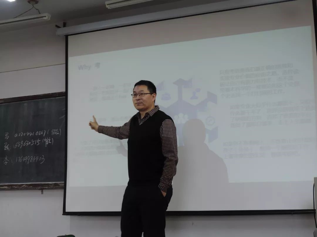 接下来,党总支副书记陈昊宇老师进行考研动员讲话,给大二大三的同学们讲解了什么样的同学适合考研、为什么要考研以及如何准备考研。他结合自己的亲身经历鼓励同学们要做到理想坚定,信念执著,不怕苦难,顽强拼搏,永不气馁,衷心祝愿同学们能够实现自己的人生理想。