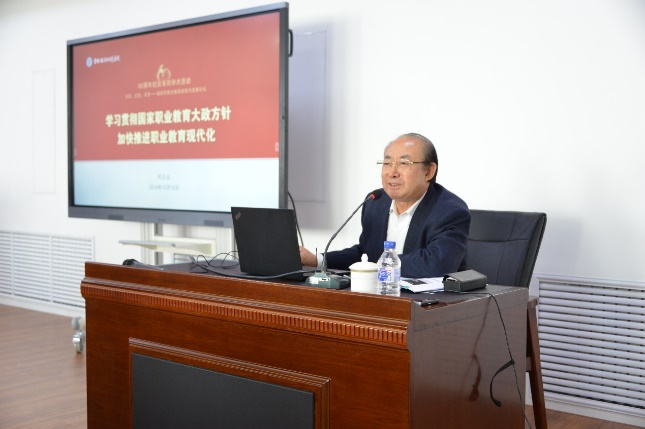 中国职业技术教育学会第四届理事会常务副会长兼秘书长刘占山作了“认真贯彻党和国家改革发展职业教育大政方针,加快推进职业教育现代化”的主题报告。他从把职业教育方针更加突出位置、国家职业教育改革发展的重大举措及职业院校改革的着眼点着力点三个方面阐述了当前我国职业教育改革发展的重要政策方针。他重点解读了习近平总书记对新时代我国职业教育改革发展提出的明确要求,十九大对职业教育改革发展做出的战略部署以及中央深改委对职业教育改革做出的专项部署。从改革理念、改革目标和改革任务等方面对《国家职业教育改革实施方案》《中国教育现代化2035》等国家职业教育改革的重大举措进行分析。从立德树人、德技并修,强化标准、规范办学,产教融合、双元育人,双师为本、建设队伍,完善教材、创新教法,信息引领、打造高地,开放办学、走向世界等方面对职业院校改革的着力点进行了讲解。