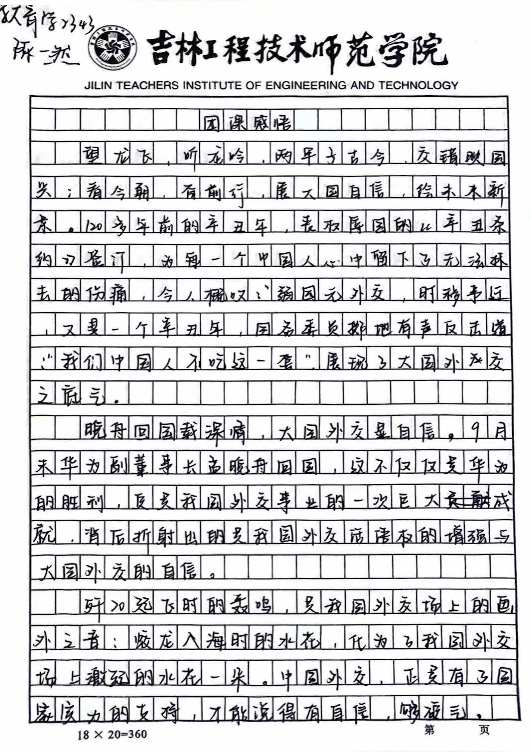 问我国外交何以强?赵立坚言:“吾辈定当勤勉,执书仗剑耀中华。”身处于新时代的我们,诚当以奋斗之姿态,不忘过往外交之屈辱,开拓外交之新面,努力奋进,共绘中国新景,让我泱泱大国更有实力,方可盼我国外交更有自信与底气。
