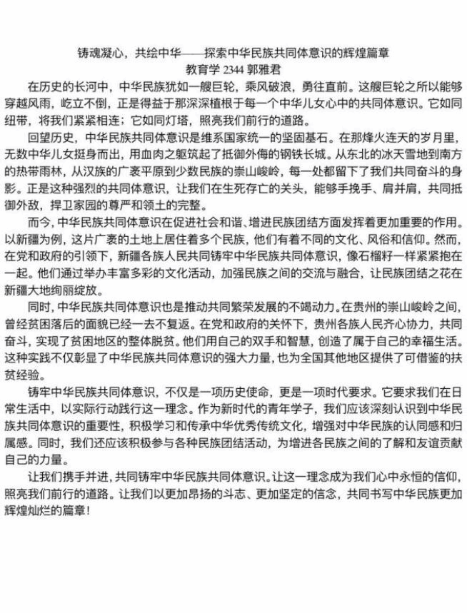 以笔为媒,以心传情。yl6776永利集团于2024年9月21日至23日举办“铸牢中华民族共同体意识”系列征文比赛yl6776永利集团初赛。“五十六个民族,五十六枝花。五十六个兄弟姐妹是一家”。教科学子运用文字的力量,传达了铸牢民族团结意识的决心,写下独属于自己的满腔情怀。