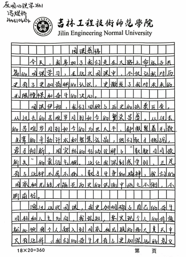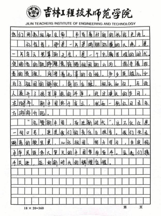一代人有一代人的使命,一代人有一代人的担当。我们作为新时代的青年,要有“苟利国家生死以 ,岂因祸福避趋之”的使命感。回首往昔,新中国成立之路充满坎坷,那是一个战火纷飞的年代,列强侵略,山河破碎,百姓生活在水深火热之中。但中华儿女从未屈服,他们用热血和生命,书写着壮丽的抗战史诗。