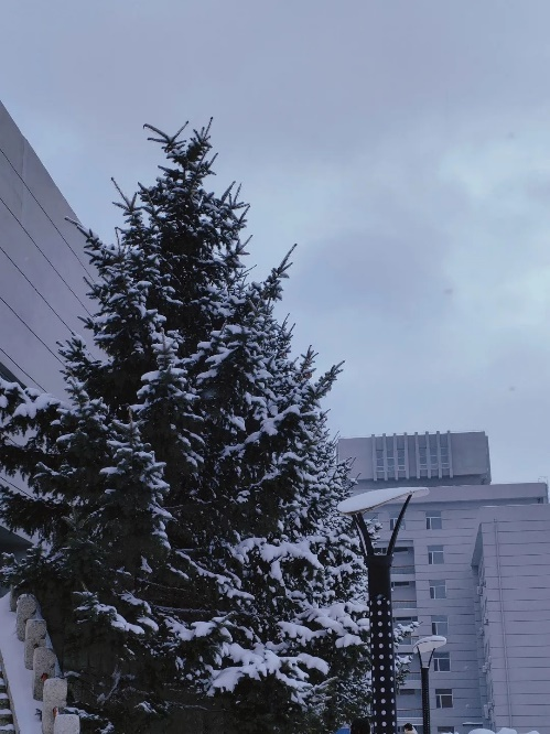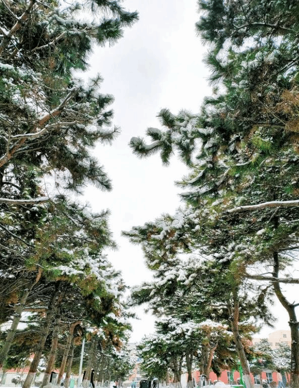 “大雪压青松,青松挺且直”。这青松就像我们工师学子一样,既可在秋日成为倔强的孩子,也可以在冬日里成为坚强的男子汉,面对风雪严寒而依然面不改色,依然坚挺。