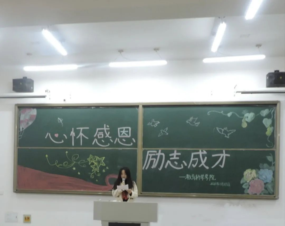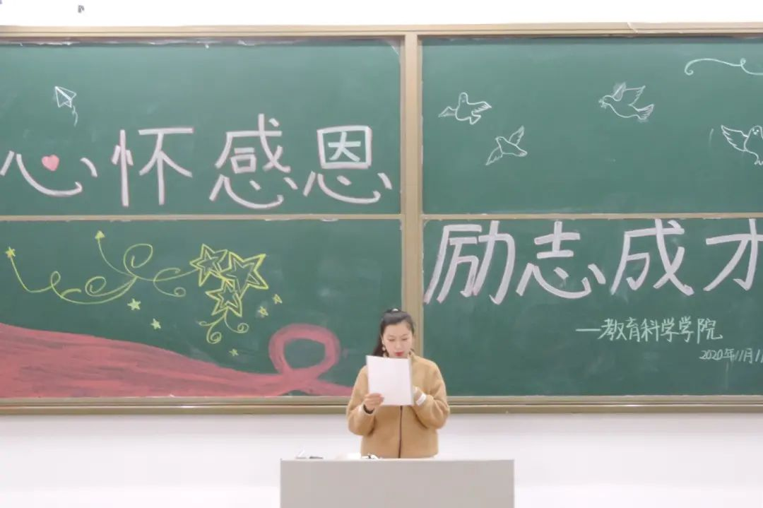 在班会的最终,全体同学起立齐唱《感恩的心》。歌声之中蕴含着对于学校的一片赤诚热爱,学校不仅为我们教科学子提供了学习和发展平台,还教会我们为人师表应具备的道德准则。正所谓“海阔凭鱼跃,天高任鸟飞”,学校给我们提供机会,我们教科学子更应心怀感恩,感念师恩,爱我校园。