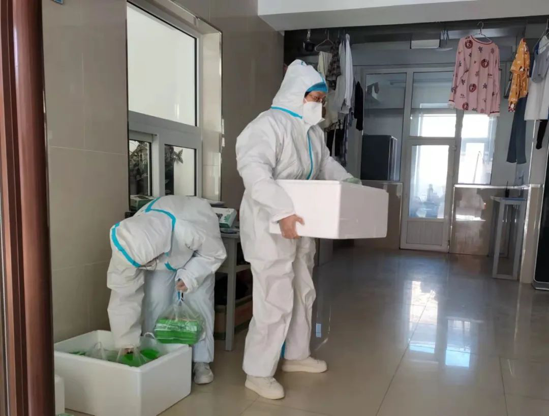 张柏羽书记作为第一公寓747名学生的大家长,负责整栋楼的防疫工作部署。每天早上天不亮便到岗为同学们准备配餐、派发抗原自测试剂,上午亲自为第一公寓的同学们搬运超市订单、领取防疫物资,下午又要组织全楼同学到体育馆进行核酸检测,直到晚上,他仍然坚守在岗位上,组织学生校外隔离并核对第二天的配餐数量,几乎做到了24小时全天待命。在此期间,他不仅是第一公寓的生活保障者,更是第一公寓及全体教科学子的心理咨询师。学生隔离期间最常见到的一则通知便是:有任何困难随时联系老师,书记们和我们在一起!