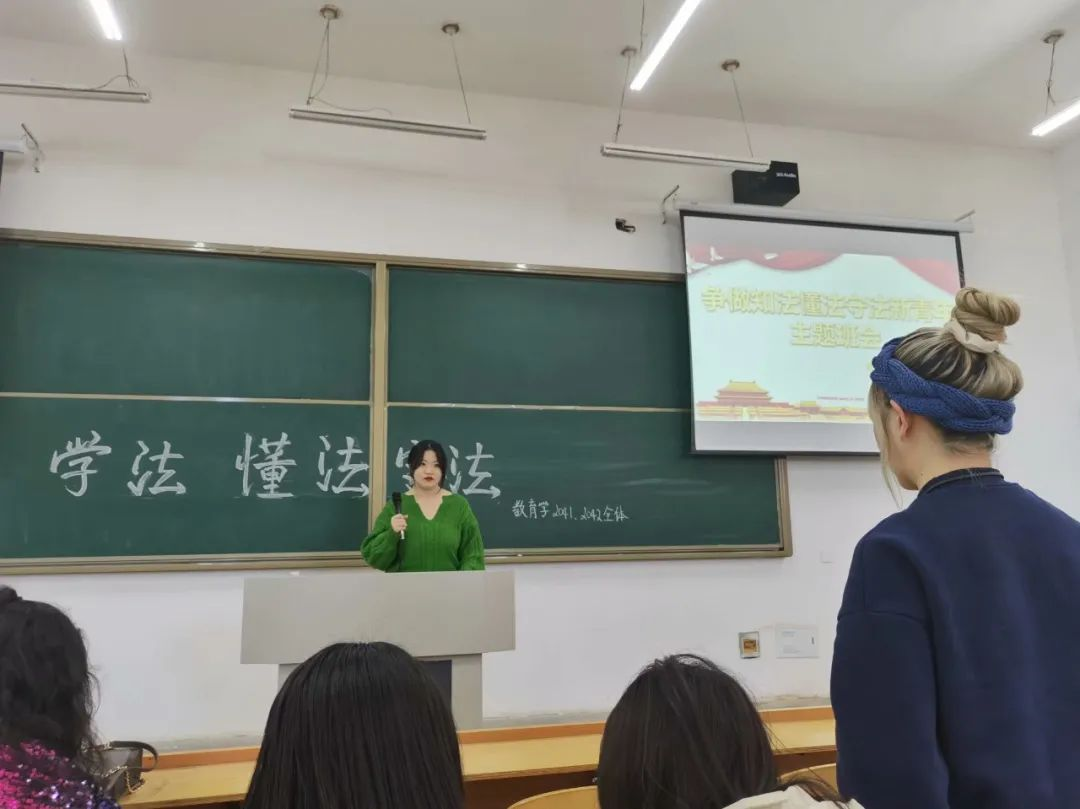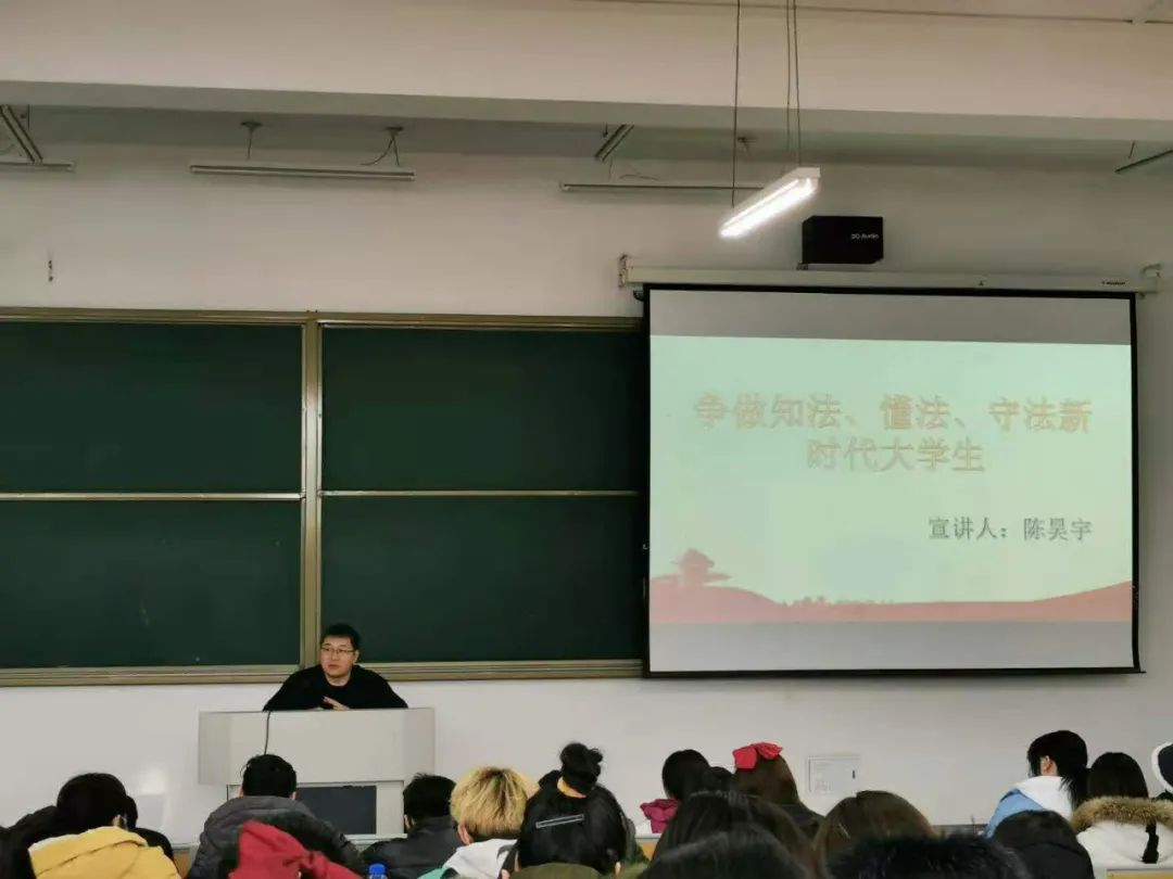 陈昊宇老师组织召开了“学做知法、懂法、守法新时代大学生”主题的普法宣传活动,深入浅出地普及了各种法律知识,同时加入各个实例以巩固加深印象,又播放了生动的视频加以理解。本次普法宣传活动使学生们既受到了印象深刻的法制教育,同时又为同学们未来的大学生活增添了法律知识的保障。