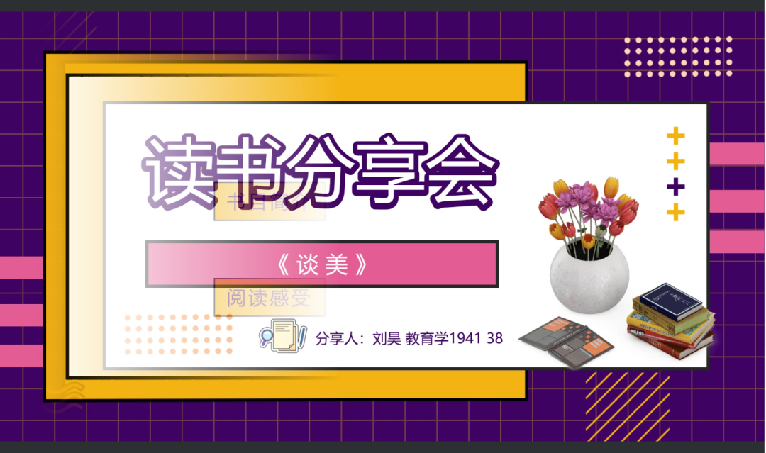 今天的读书分享活动让我了解了更多的故事,丰富了我的封寝生活,学姐考研的分享和老师的教导也让教给了我许多学习的道理,明白了在疫情防控时期也要多学习多读书继续努力。