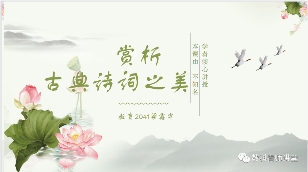 本次青师讲堂,梁鑫宇同学将会给大家举例进行讲解,教会学习者如何能够联系注释以及诗中意象,知人论世,进行赏析。