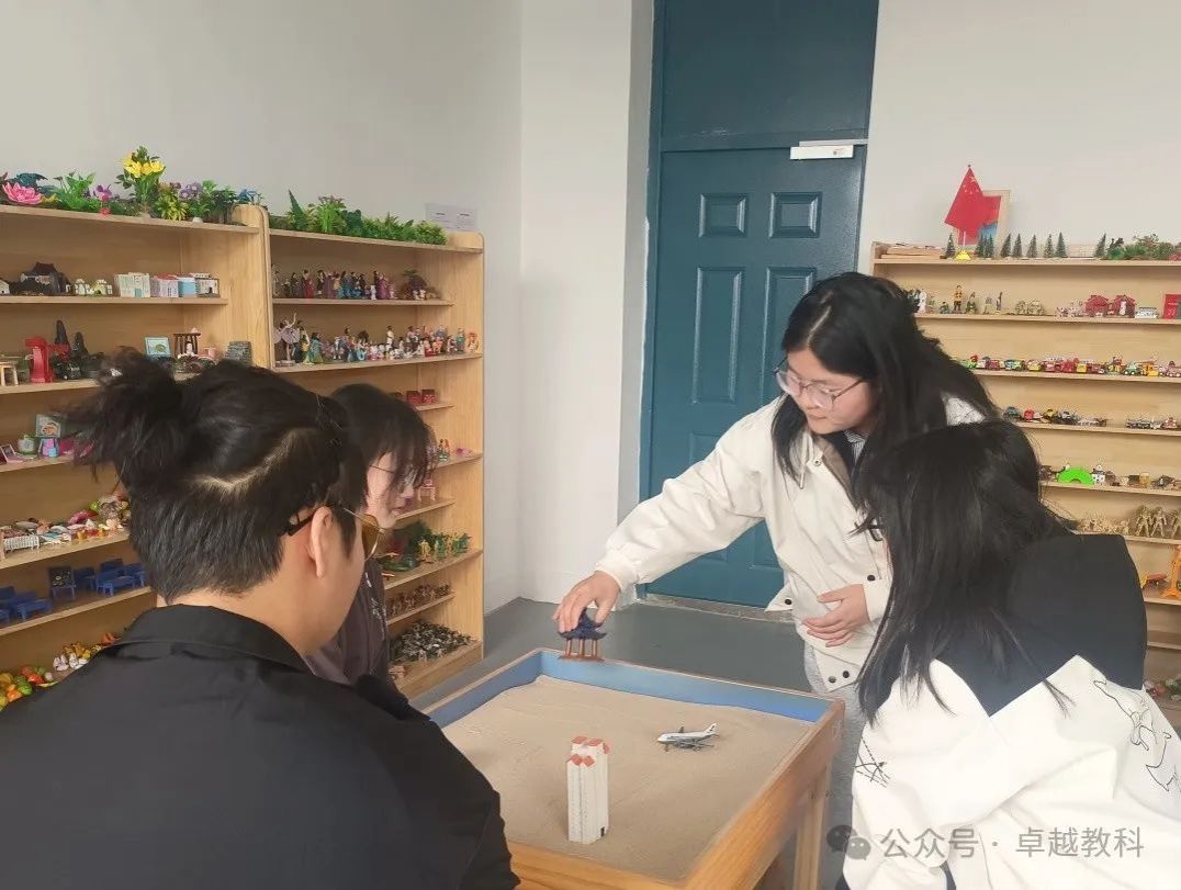 回顾沙盘摆放模式的演变,可谓经历了多个阶段。起初,同学们彼此陌生,沙盘呈现出分裂割据的状态,每个人的 “三千小世界” 互不干扰,大家各自沉浸在自己的天地里。到了第二阶段,同学们开始有了初步接触,会用沙件 “侵入” 她人的 “领地” 。不同风格相互碰撞,难免产生矛盾。而现在,多样的风格在沙盘中完美融合,浑然一体。